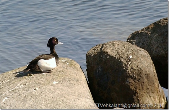 Tukkasotka koiras, hieno letti