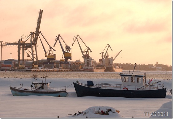 Tänään päivällä kävin Markun kanssa Reposaaren valokuvausretkellä. Rannalla kävi kohtuullinen, kylmä viima ja Aurinko paistoi hennosti pilviverhon takaa. Sinne oli jätetty kalastusveneet talviteloille satama-altaaseen. Mäntyluodon satamassakin näytti kaksi laivaa olevan. Muuten rauhaiselo oli vallannut koko paikan. Asuntomessu alueellakin oli monet pihat lunta täynnä. Meri oli osittain auki ja avomeren reunalla oli viitisenkymmentä vesilintua. Valokuvien lisäksi tältä reissulta tuli mukaan rantaravintolan kalamyymälästä purkki suutarinlohta.