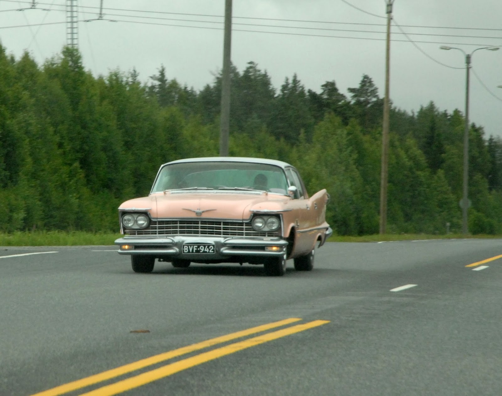 Vaaleanpunaininen Chrysler imperial 1950 luvun lopulta